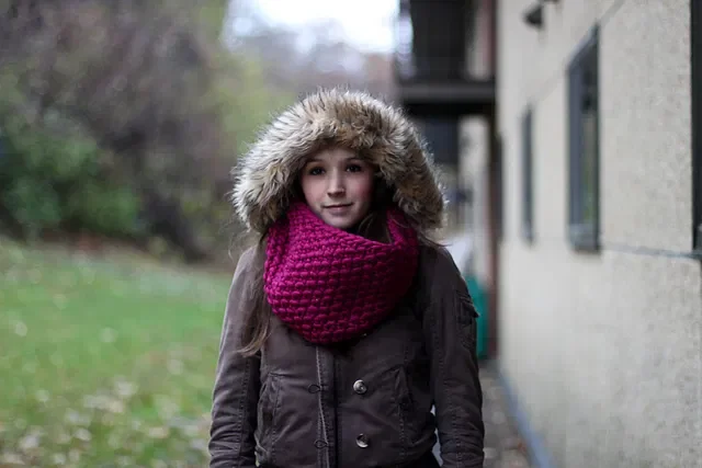 Knitting this free circle scarf pattern took me two evenings in front of the TV, and I was thrilled with the result!