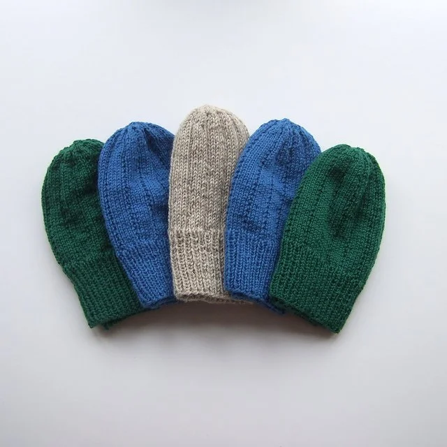These mittens come in toddler to adult large, and can be knit in any gauge with any yarn! It’s the perfect way to use up leftovers, particularly if you want to try your hand at stripes.